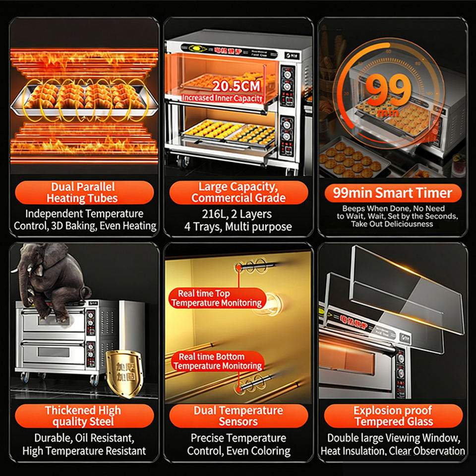 Four électrique professionnel à chauffage rapide et uniforme, idéal pour hôtels et boulangeries, 1 niveau, 2 plateaux, directement de l'usine