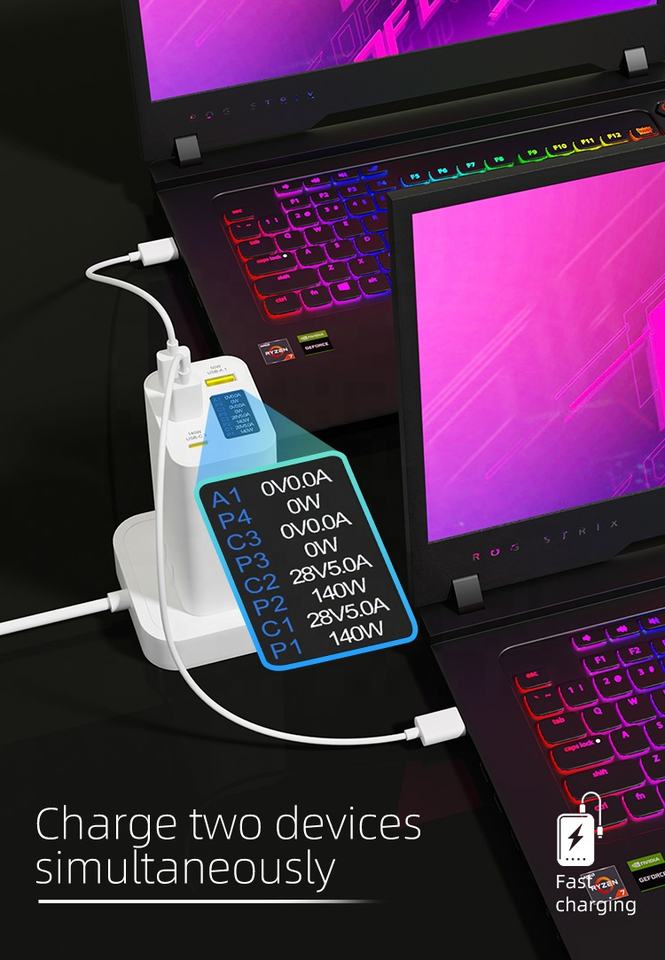 Usine directe rapide PD 20W 65W 140W 200W 280W 300W Type C GaN chargeur USB pour ordinateur portable pour Apple Samsung Macbook Air Pro iPhone 15