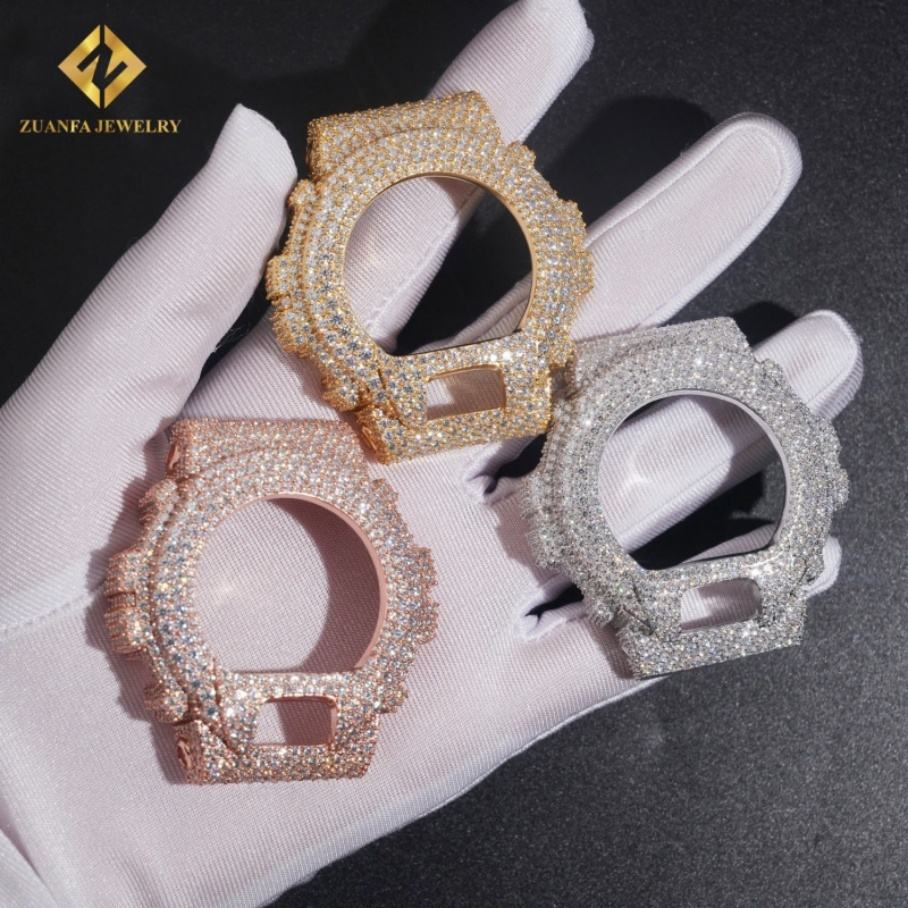 Bijoux fins en direct d'usine, Hip Hop, argent 925 plaqué or, diamant moissanite, glacé, boîtier de montre DW6900 avec moissanite