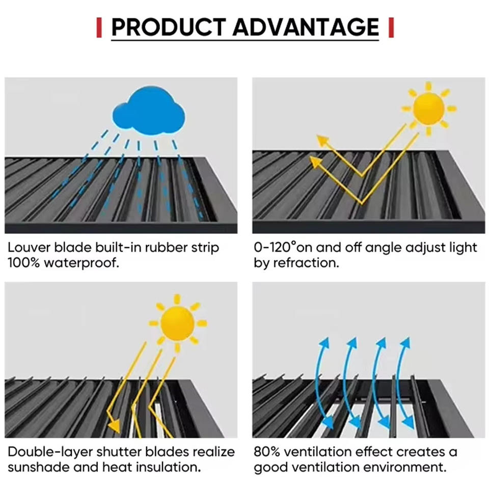 Pavillon de jardin autoportant, kiosque, véranda, pergola, extérieur, double vitrage trempé, toit en verre Low-E, directement de l'usine