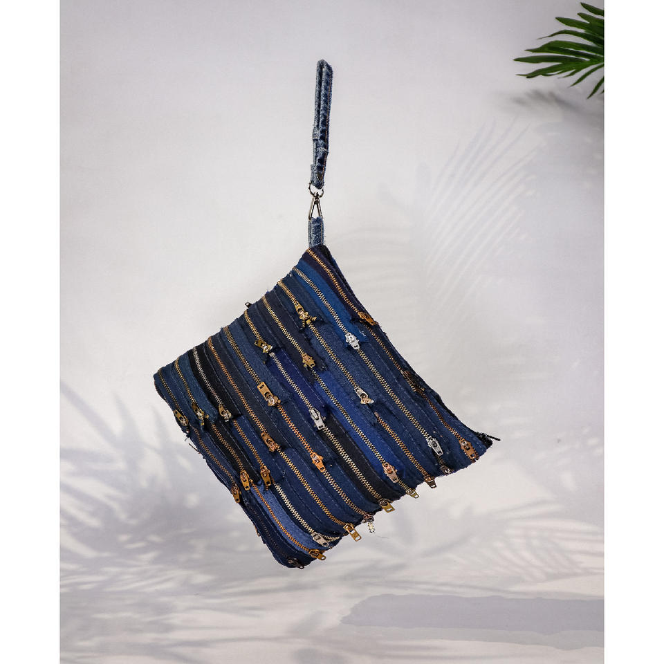Pochette en jean faite à la main, directement de l'usine, avec fermeture éclair et poignée latérale, OEM ODM