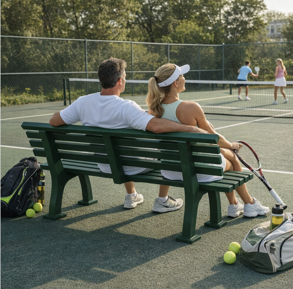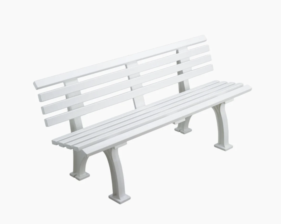 Banc d'extérieur en PVC robuste, fabrication directe usine, capacité 500 lbs, 200 cm, pour jardin, patio, véranda, parcs publics et terrains de sport
