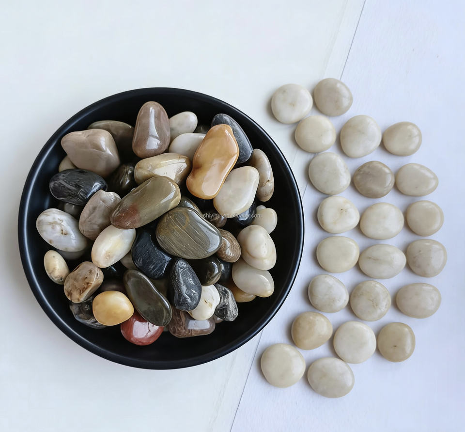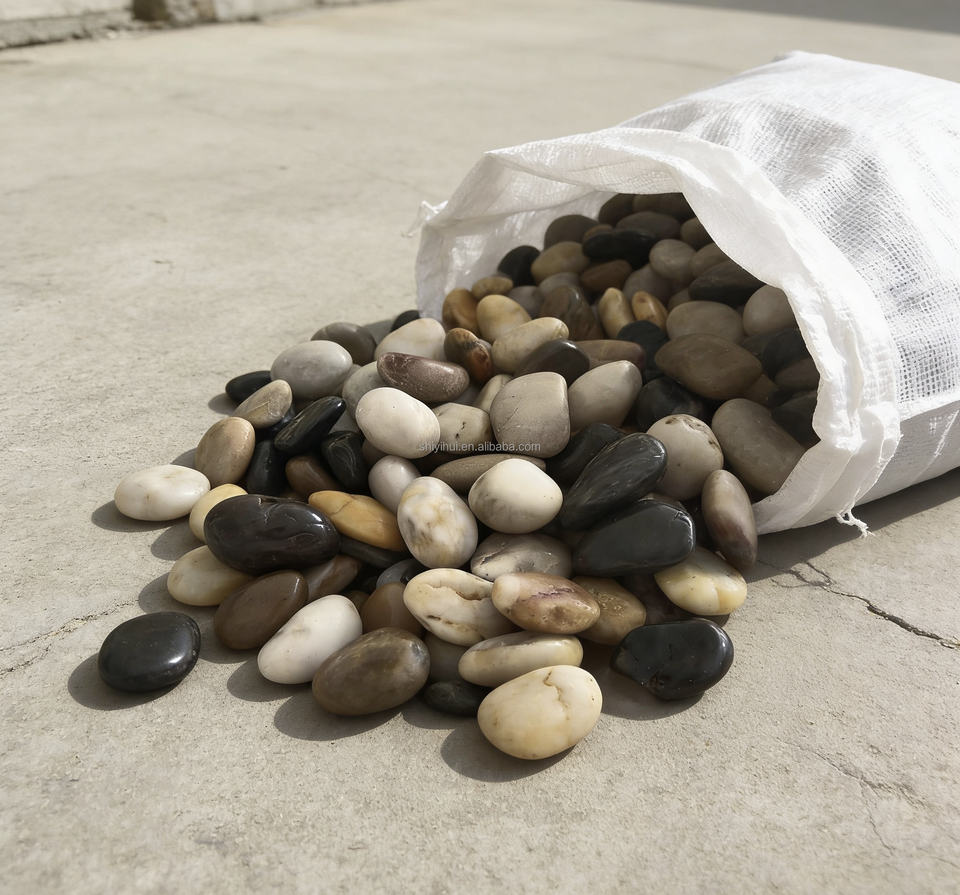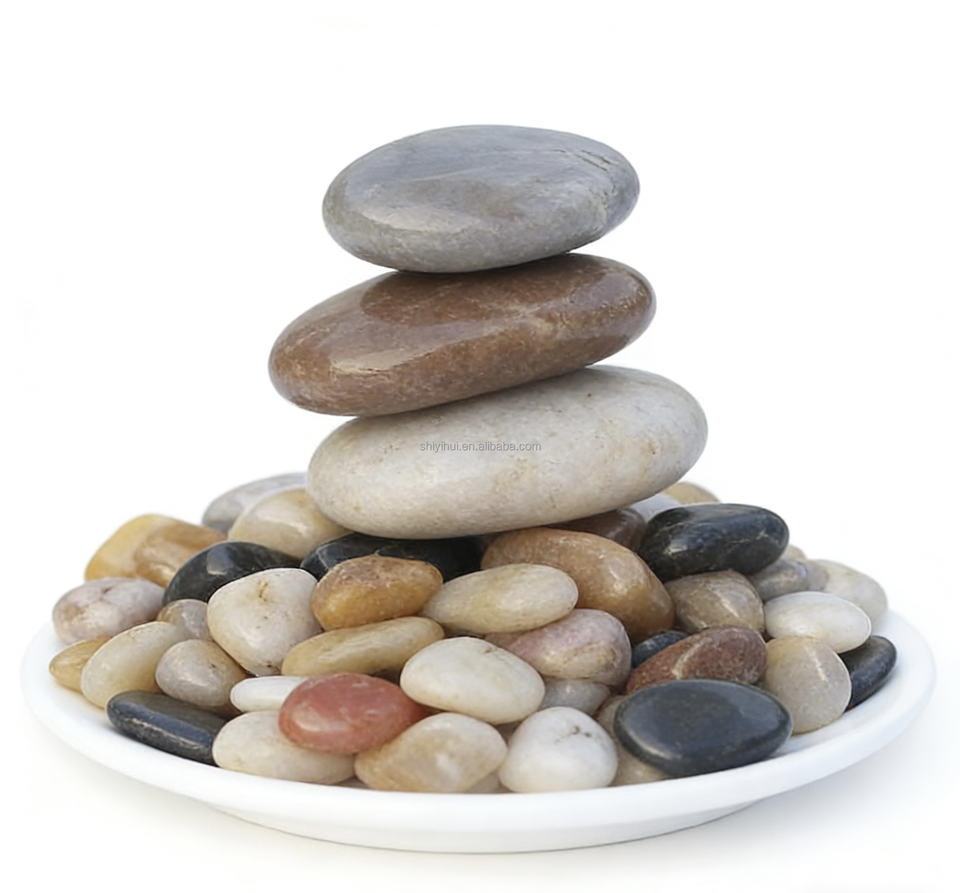 Pierre de galet de rivière naturelle, polie, écologique et durable, directement de l'usine, pour la construction de designs modernes, l'aménagement paysager et les allées.