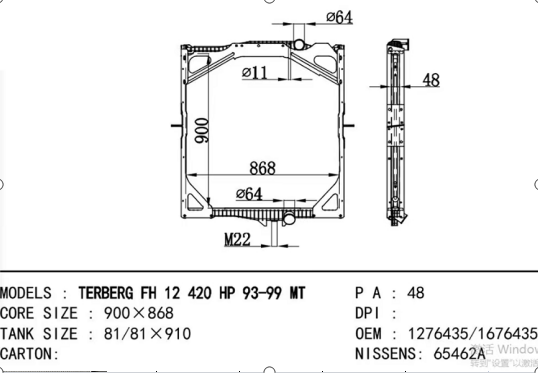Radiateur en plastique en aluminium de haute qualité direct d'usine pour radiateur de camion Volvo FH 12/FH 16/FM/NH 12/TERBERG OEM 8149362/1276435