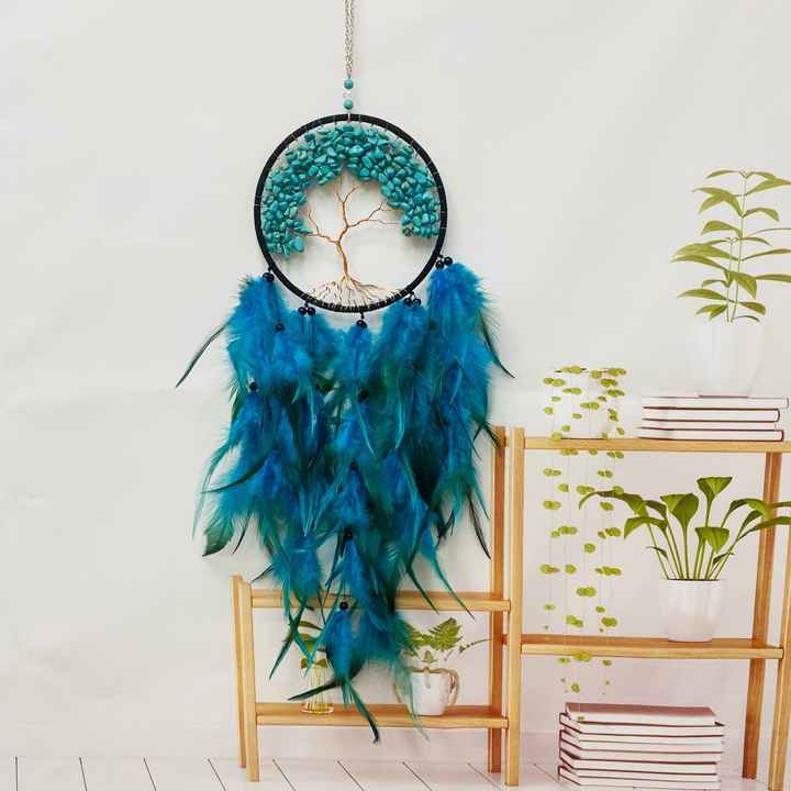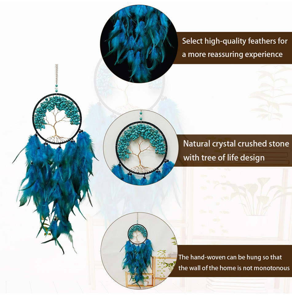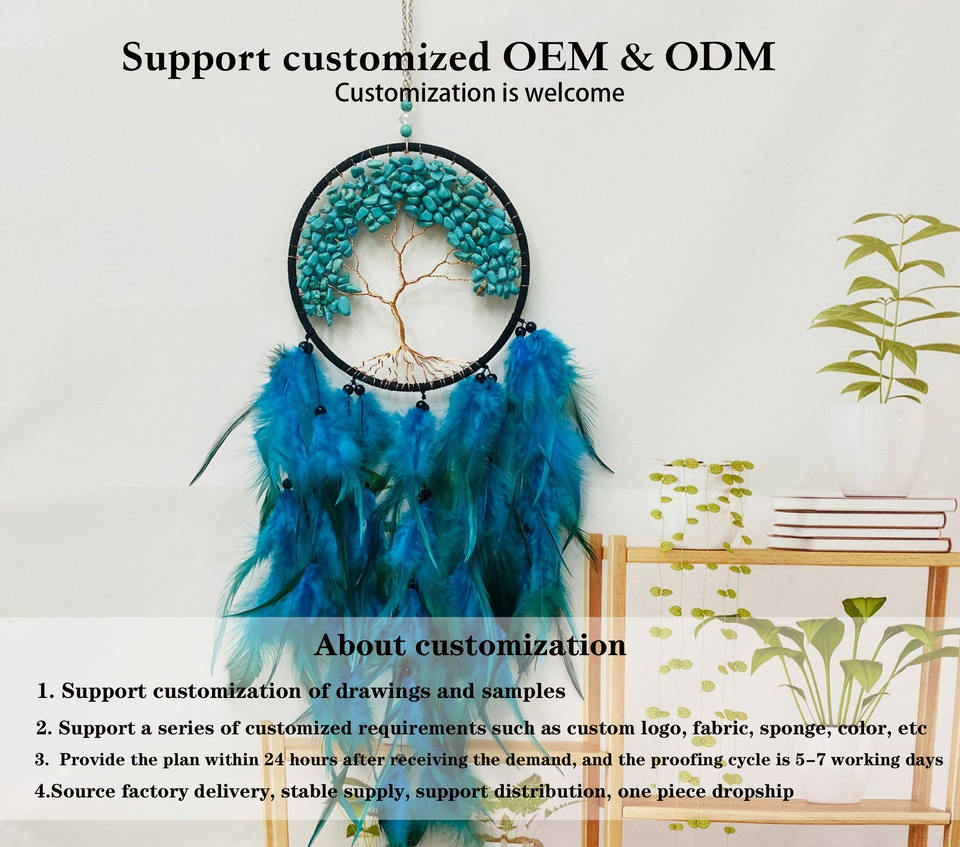 Usine directe de haute qualité décoration de la maison arbre de vie conception attrape-rêves plume bleue peut être accroché