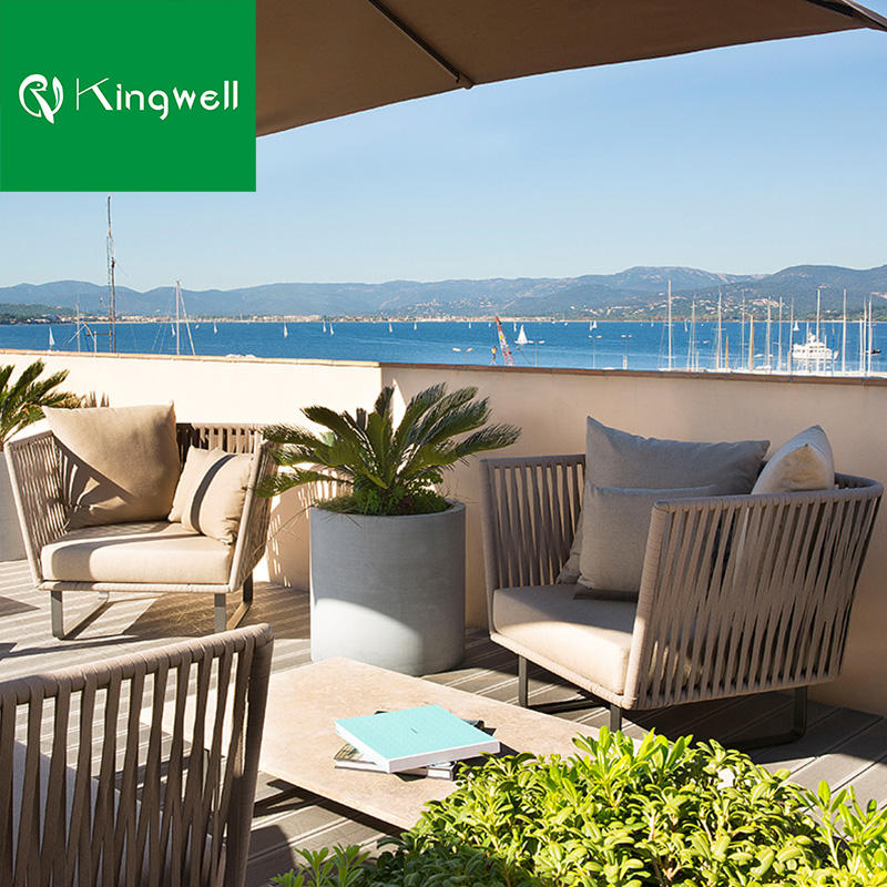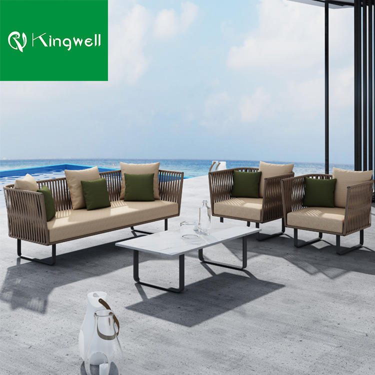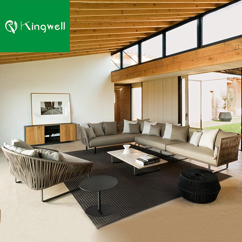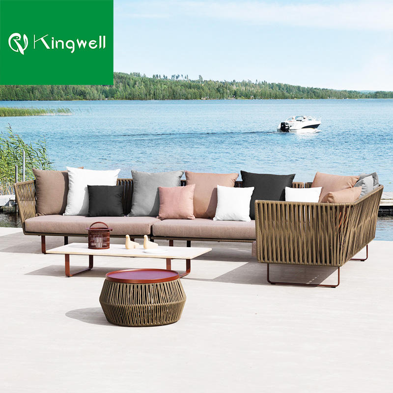 Usine directe de meubles de patio extérieur de haute qualité en aluminium corde armure 5 places jardin canapé ensemble salon