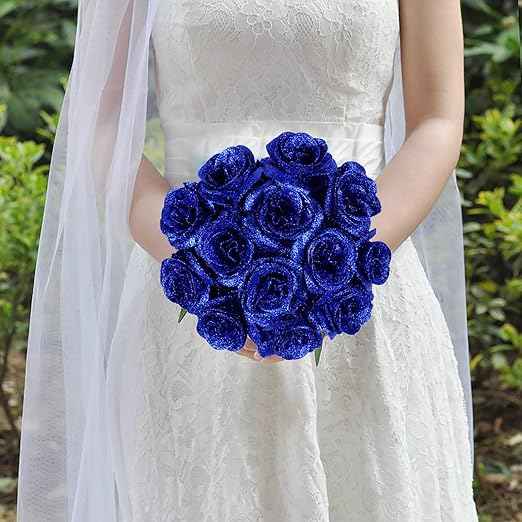 Rose scintillante taille Honor avec tige, en mousse, à poudre dorée dégradée, pour bouquet de mariée DIY, décoration de fête et de mariage, directement de l'usine