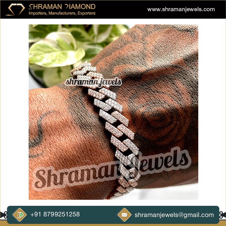 Offre Spéciale directe d'usine 10mm glacé VVS Moissanite diamant bicolore plaqué 925 argent Hip Hop Style Bling buste cubain lien Bracelet