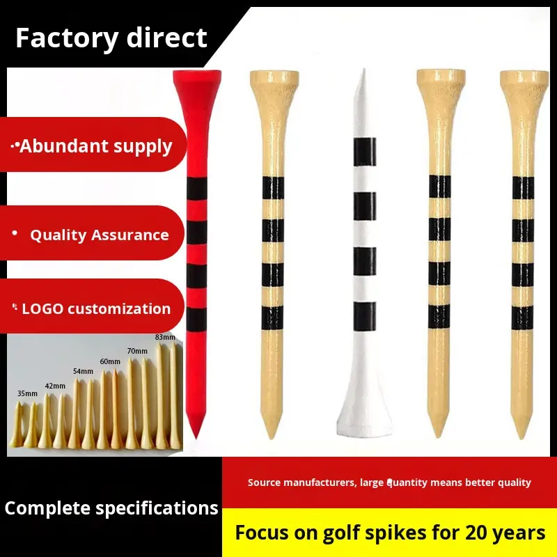 Direct usine IGESON HYT-02 Tees de golf en bambou écologiques de 70 mm à rayures colorées, porte-balles, personnalisables, de haute qualité