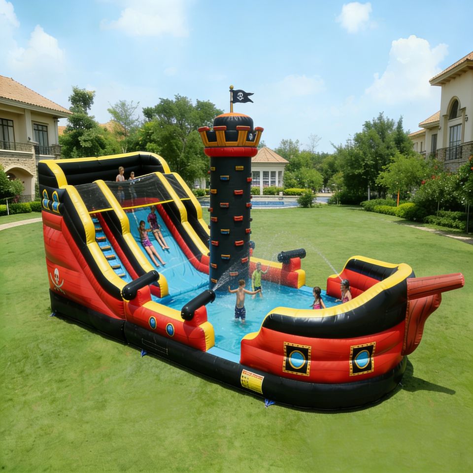 Château gonflable pirate avec toboggan aquatique et piscine, directement de l'usine