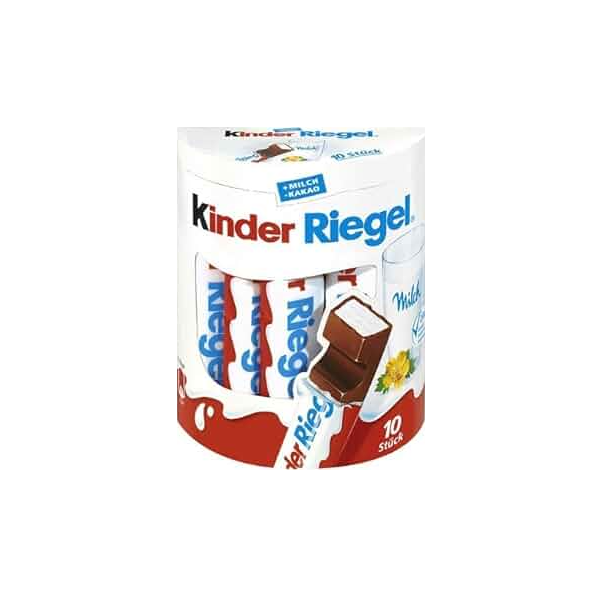 Lot de 4 Kinder Riegel 50g, directement de l'usine, de Ferrero Allemagne, avec enrobement de chocolat au lait entier à 40 % et 18 % de lait entier.