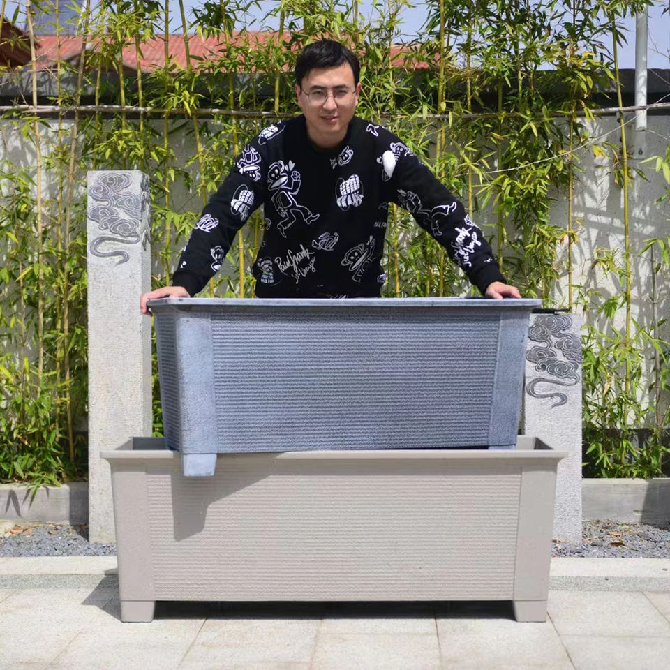 Usine directe grand pot de fleurs rectangulaire 4 tailles pierre comme bloc à travers le pot de plante en plastique de jardinière s'adapter à plusieurs intempéries