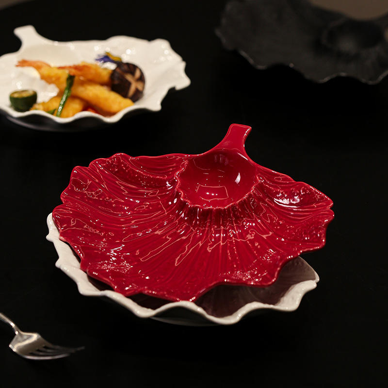 Assiette en céramique de luxe léger, exquise, en forme de coquillage.
