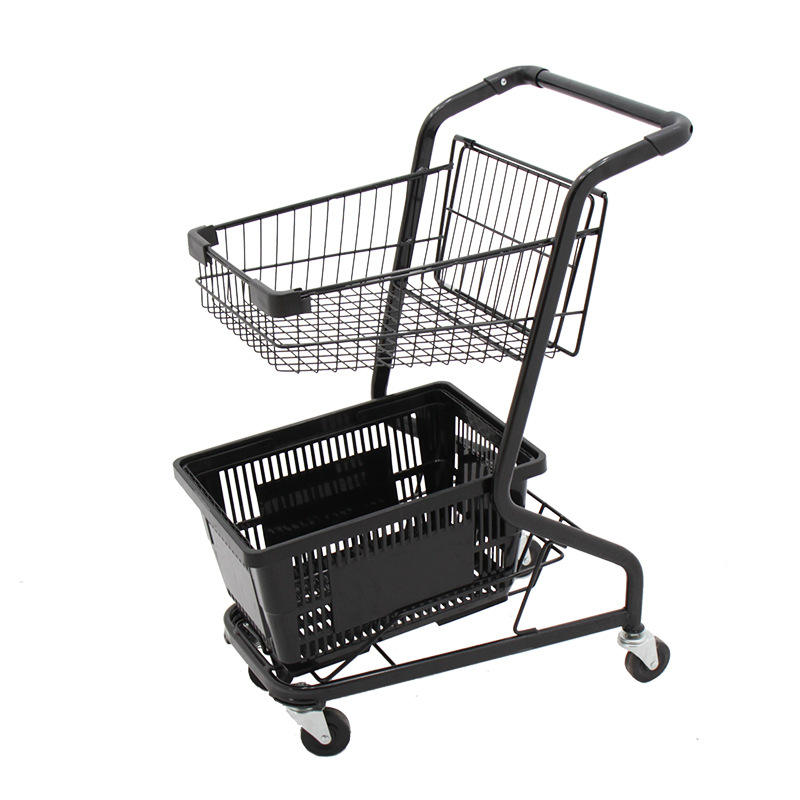 Chariot double avec panier et roues en PVC