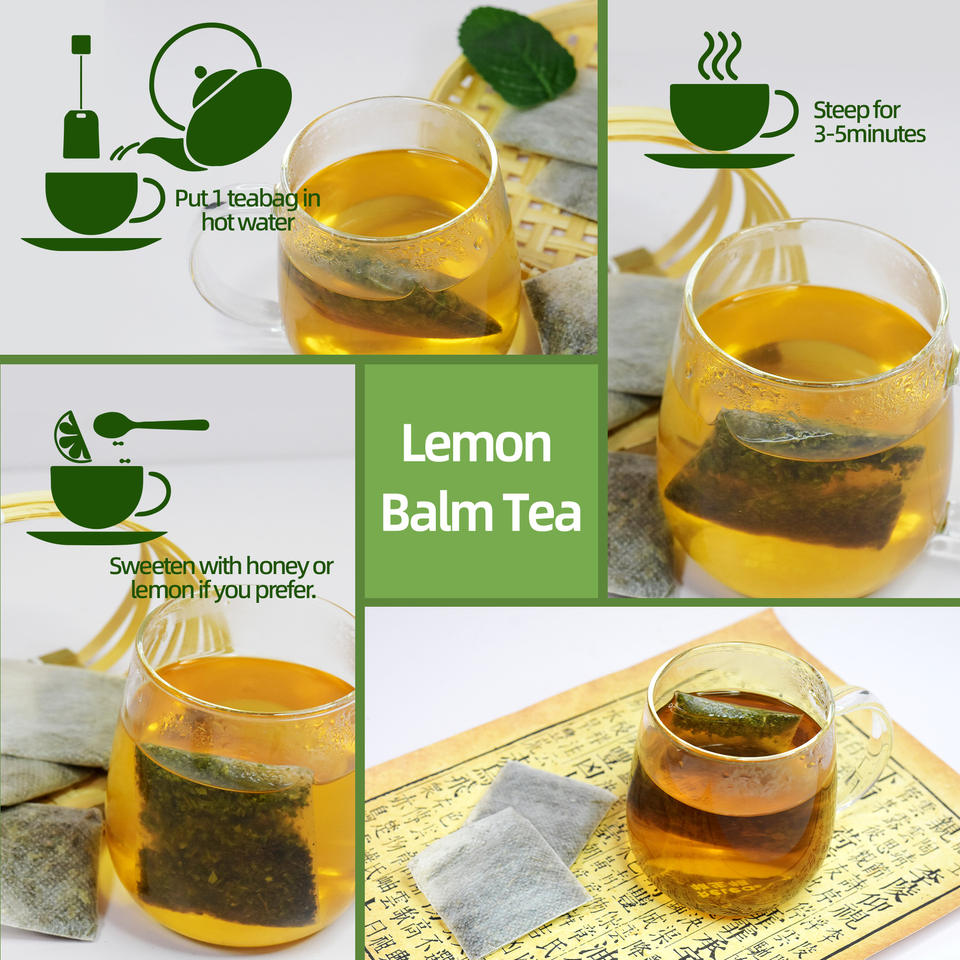 Thé en sachets de mélisse purement naturelle et biologique, directement de l'usine, faible MOQ et OEM, pour le reflux acide, thé relaxant et apaisant pour le bien-être
