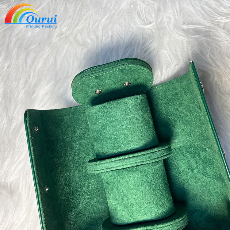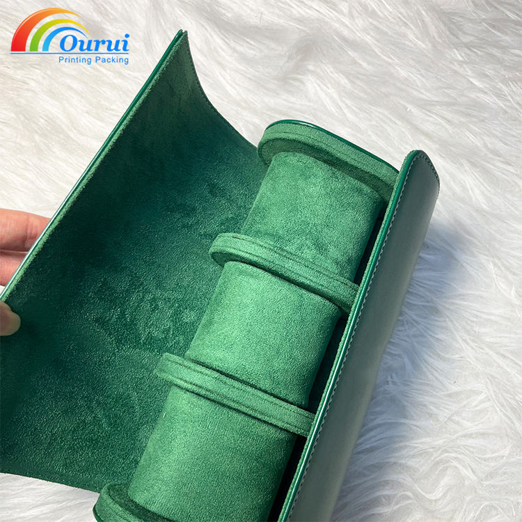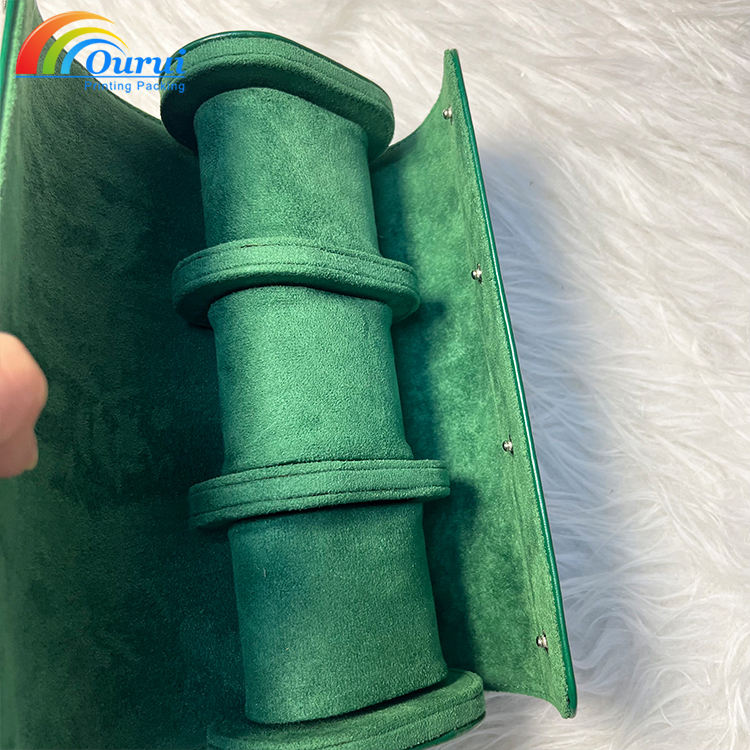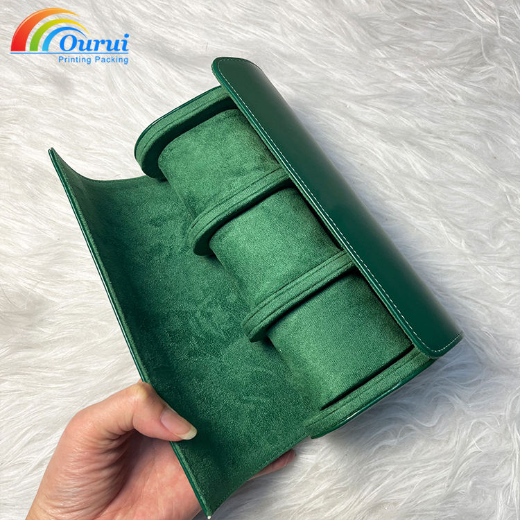 Boîte à montres de luxe verte à 3 emplacements, fabriquée directement en usine, étui de voyage portable pour montres avec logo personnalisé, boîte à montres de marque de haute qualité