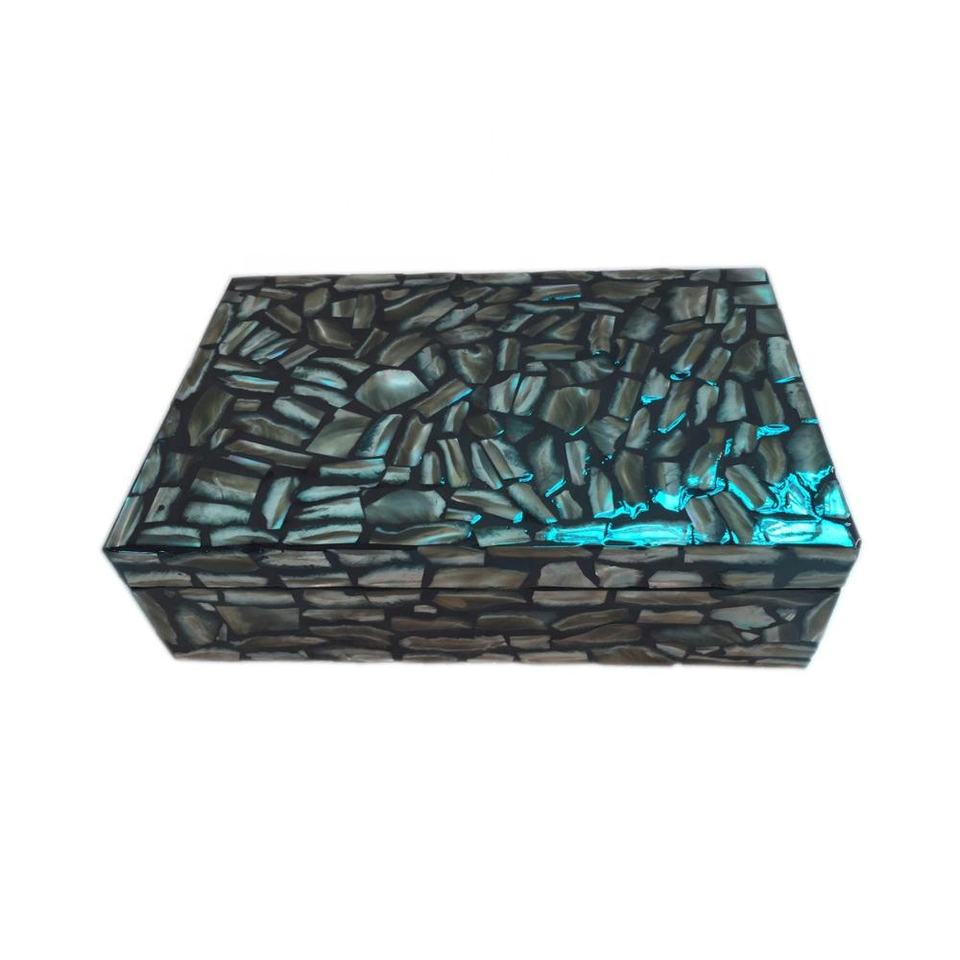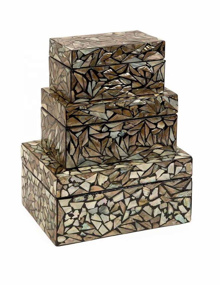 Boîtes à bijoux en velours et bois de luxe direct d'usine avec incrustation de nacre forme de rectangle vente en gros chaude