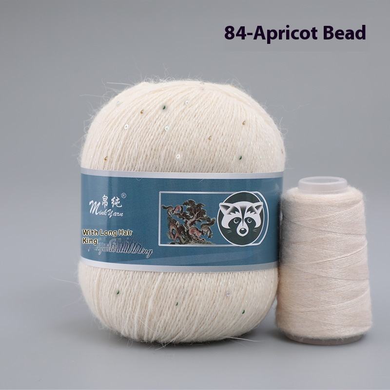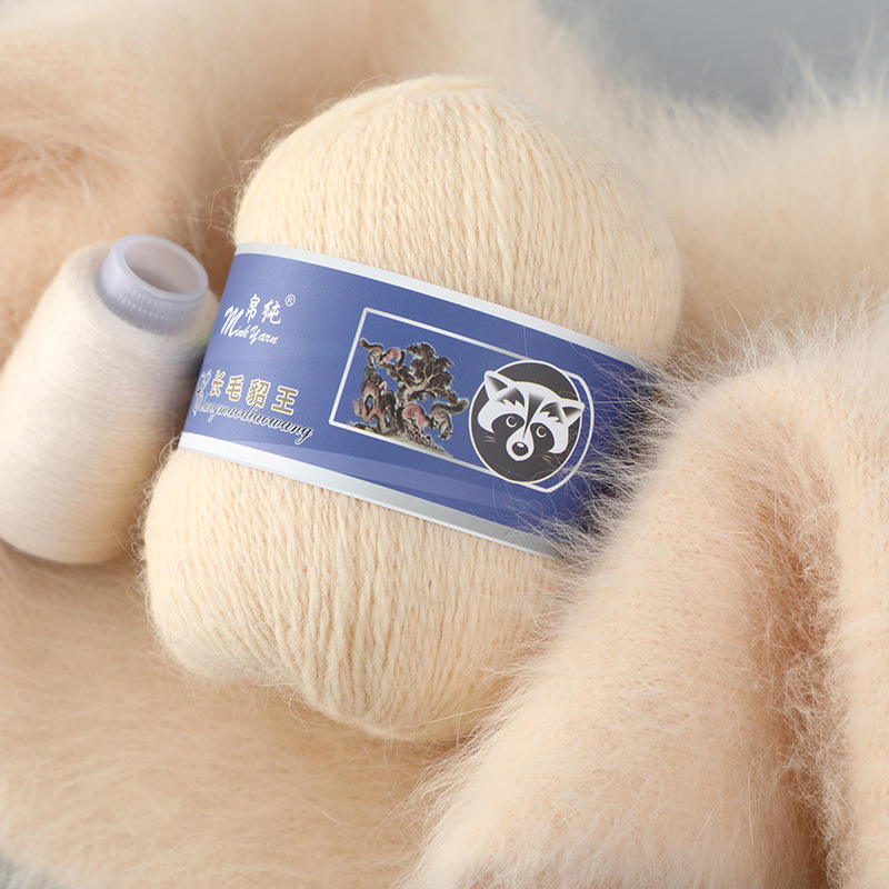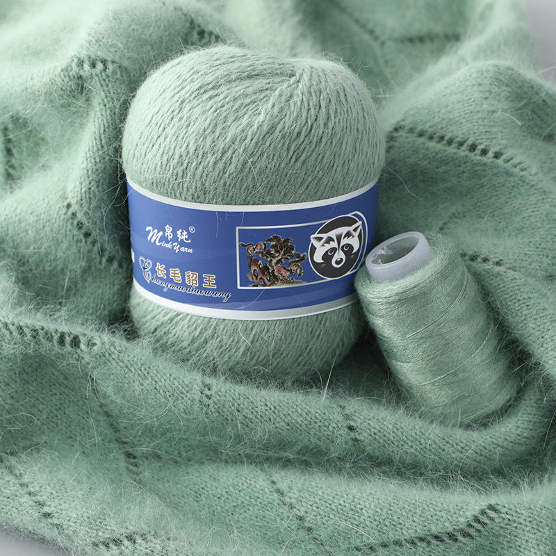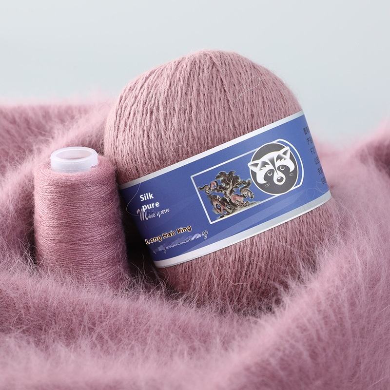 Fil de soie pur boule de vison à poil long mi-épais direct d'usine avec motif teint pour l'exportation transfrontalière de tricot à la main