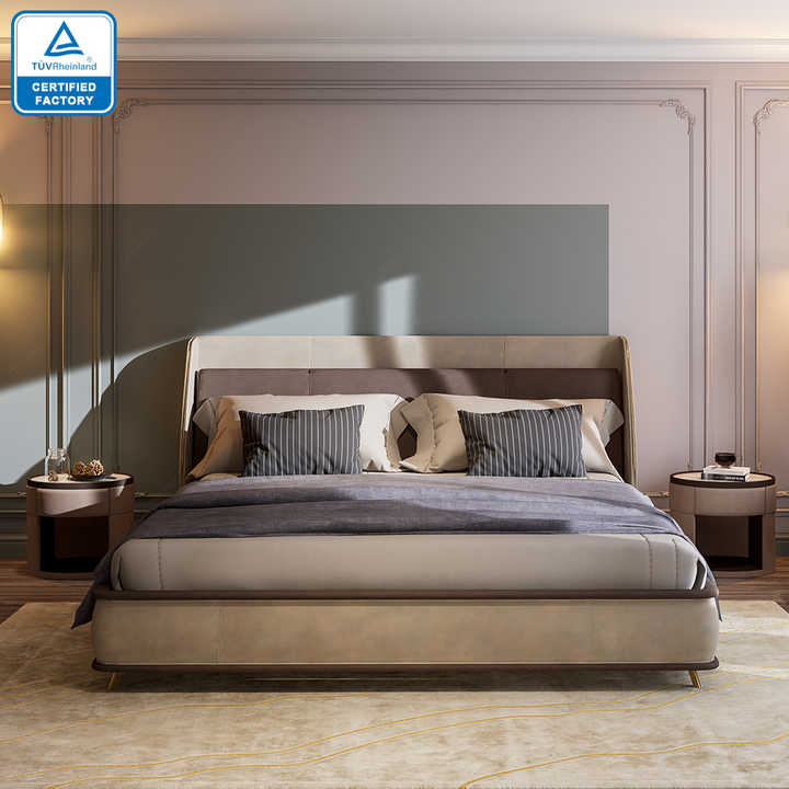 Direct usine Ensemble de lit moderne en cuir italien haut de gamme hôtel villa Lit double de luxe King Size