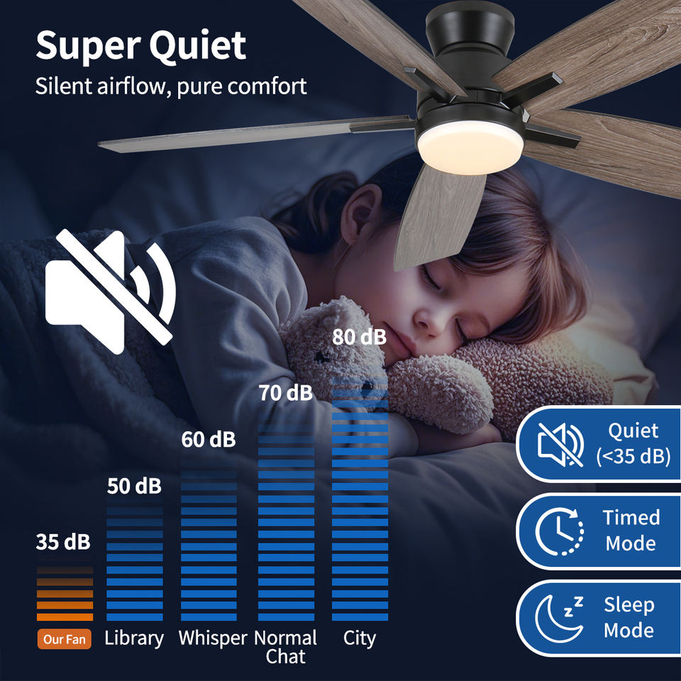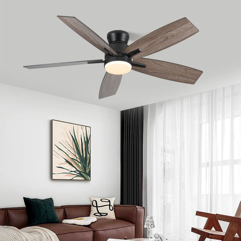 Ventilateurs de plafond LED modernes à commande à distance, moteur DC réversible, pales en contreplaqué, 6 vitesses, 5 pales, CRI élevé 95, garantie 5 ans, directement de l'usine
