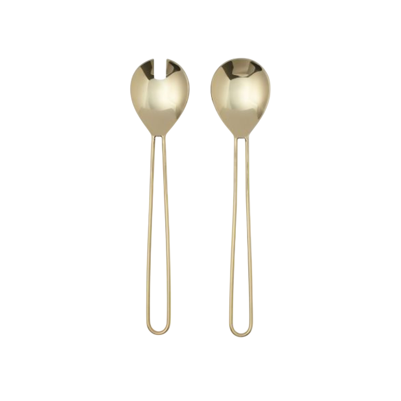 Ensemble de 2 cuillères à salade en acier inoxydable finition or, style moderne, directement de l'usine, élégants ustensiles de service en métal pour la cuisine