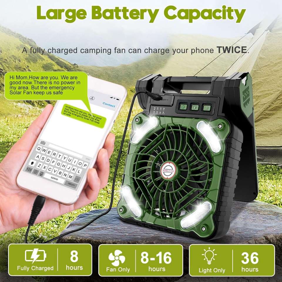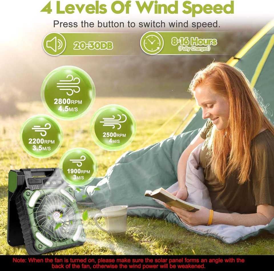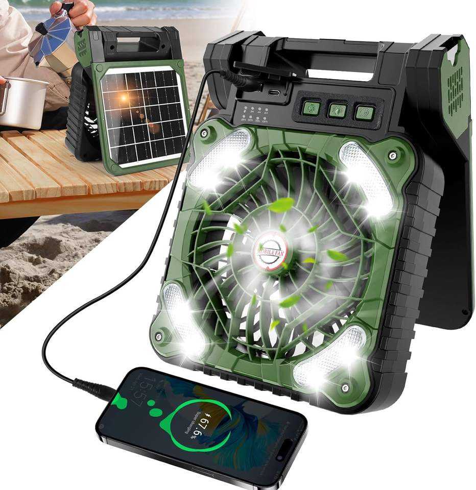 Ventilateur solaire portable multifonctionnel pliable à énergie solaire avec lumières LED pour tente de camping en plein air, directement de l'usine