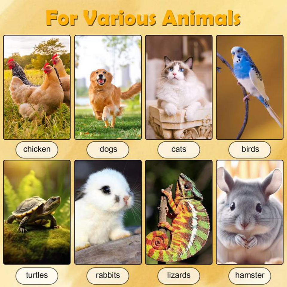 Poulets, Lapins, Oiseaux, Lézards, Hamsters, Chinchillas, Reptiles, Petits Animaux, TortueApplication