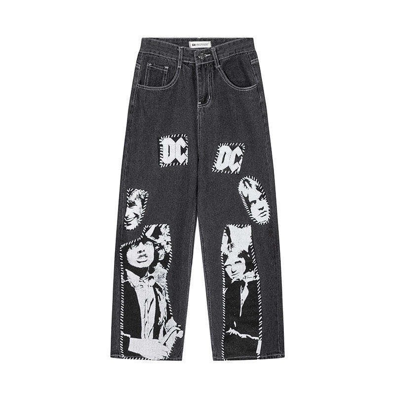 Jeans amples délavés brodés, design uni, effet usé, en denim, vente directe usine, nouvelle mode, production en gros OEM