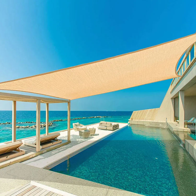 Usine directe nouveau matériau Hdpe vierge Beige extérieur grand Patio carré Triangle tissu résistant aux UV ombrage voile d'ombrage