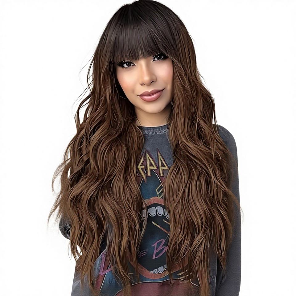 Perruque complète en soie haute température, longue et bouclée, effet grandes vagues, dégradé brun foncé, douce, pour usage quotidien, OEM/ODM, directement de l'usine