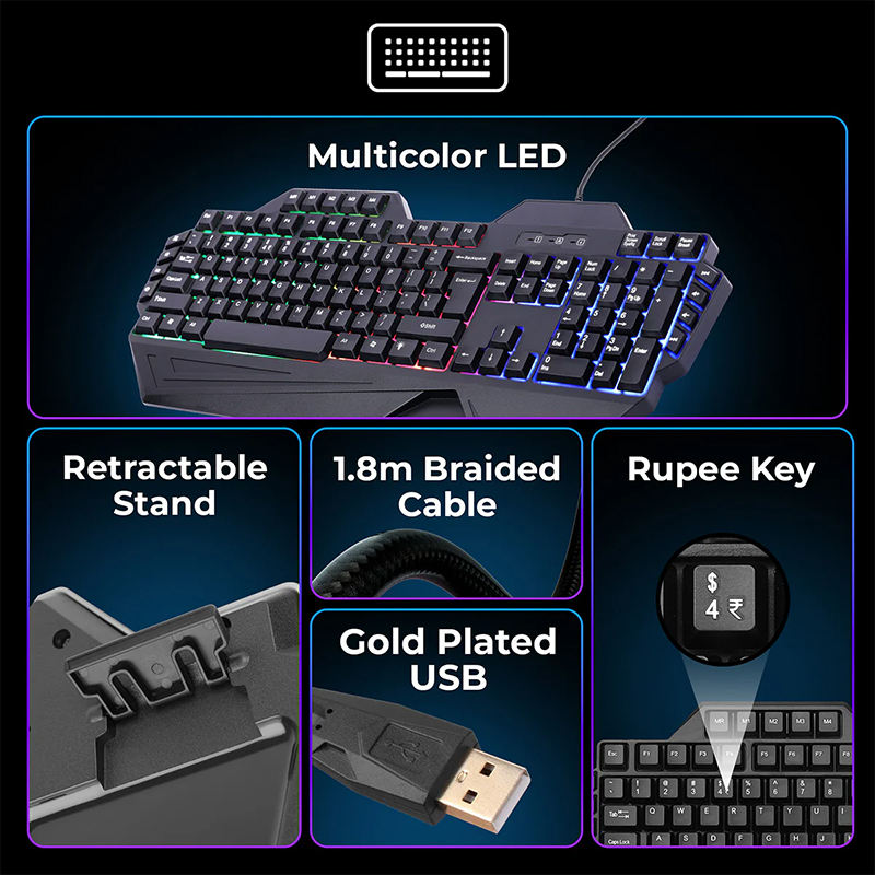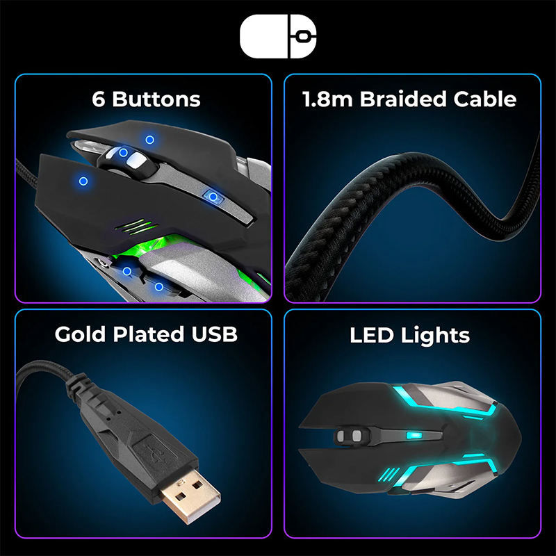 Clavier et souris de jeu combinés 2 en 1 avec lumière arc-en-ciel, offerts directement par l'usine, fonction macro, clavier et souris filaires pour joueur sur PC