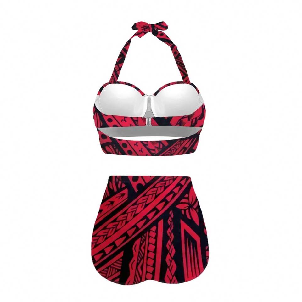 Maillots de bain imprimé rouge, tatouage polynésien Direct d'usine, paréos longs pour femmes, Cover-up, Bikini confortable, vêtements de plage, 2023