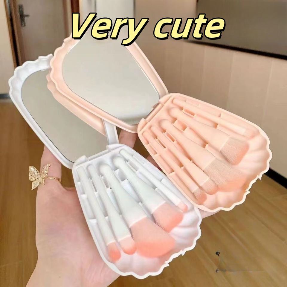 Usine directe Portable coquille miroir boîte Offre Spéciale 5 pièces multi-fonction maquillage brosse ensemble blaireau ventilateur brosse pour la beauté du visage