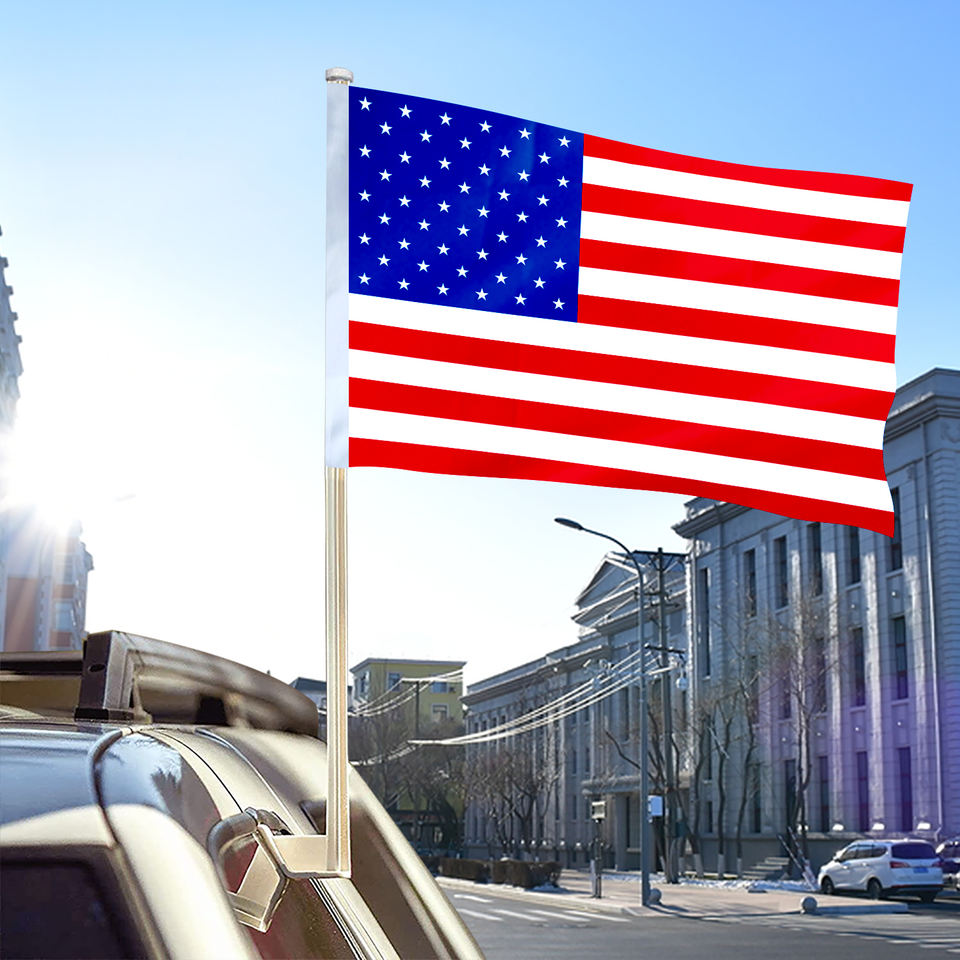 Produits directs d'usine personnalisés 12*18 pouces 100% polyester couleur brillant anti-décoloration anti-UV drapeau de fenêtre de voiture américain