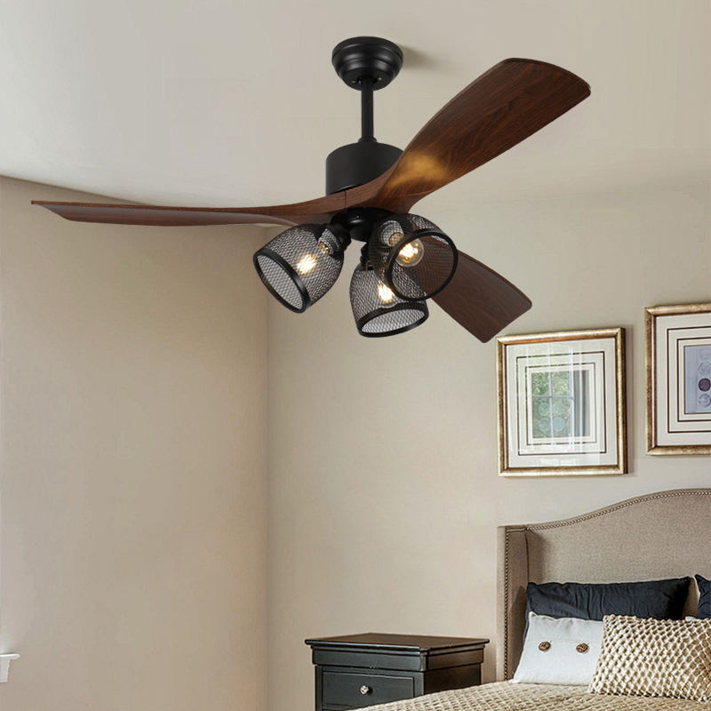 Ventilateurs de plafond rétractables directs d'usine avec lumières et lames en bois de moteur BLDC réversibles à distance pour chambre salon