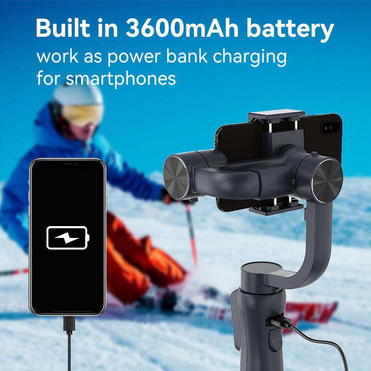 Caméra intégrée, Bâton intégré de Selfie, Port de contrôle de la caméra, Sortie alimentée par USB, Échange de batterie capable, Axe de rouleau de 360 degrésCaractéristiques