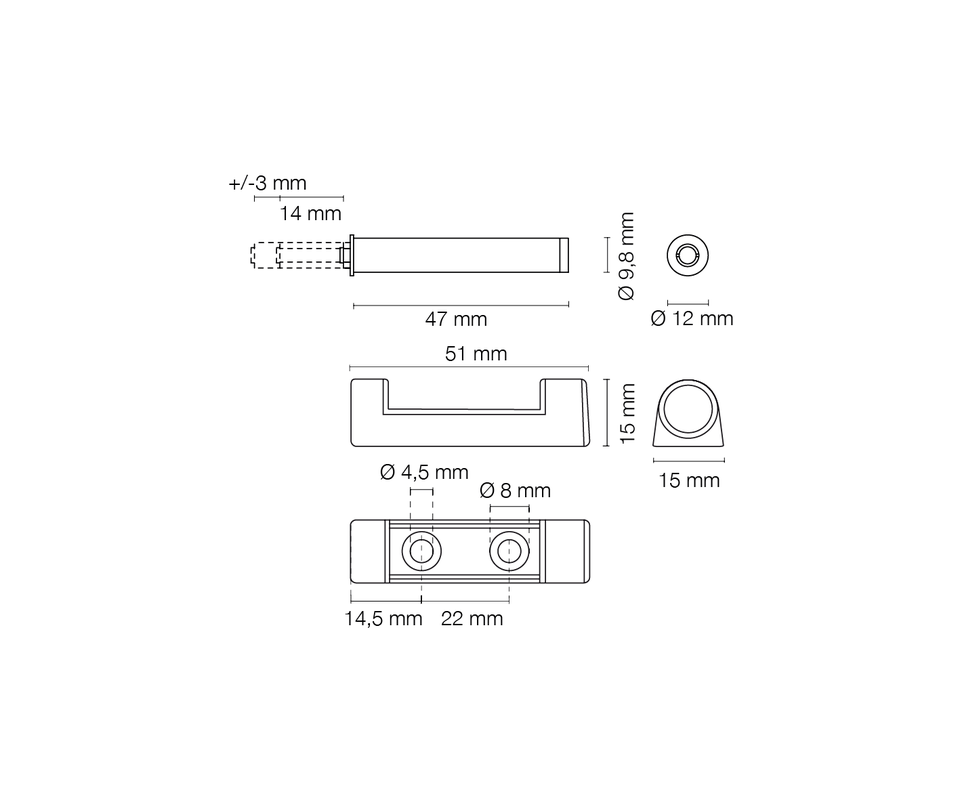 MACO 0487 Vente directe d'usine Loquet à poussoir de course de 14 mm en Italie Loquet à poussoir réglable à fermeture en douceur avec fixation de tampon avec trous