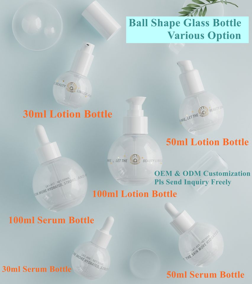 Vente directe d'usine 30ml bouteille de sérum en verre en forme de boule avec compte-gouttes pour les soins cosmétiques de la peau