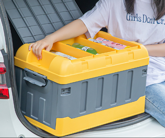 Vente directe d'usine 70L grand bac de rangement pliable avec couvercle bonne vente en plastique grande capacité boîte de rangement pliante pour la maison