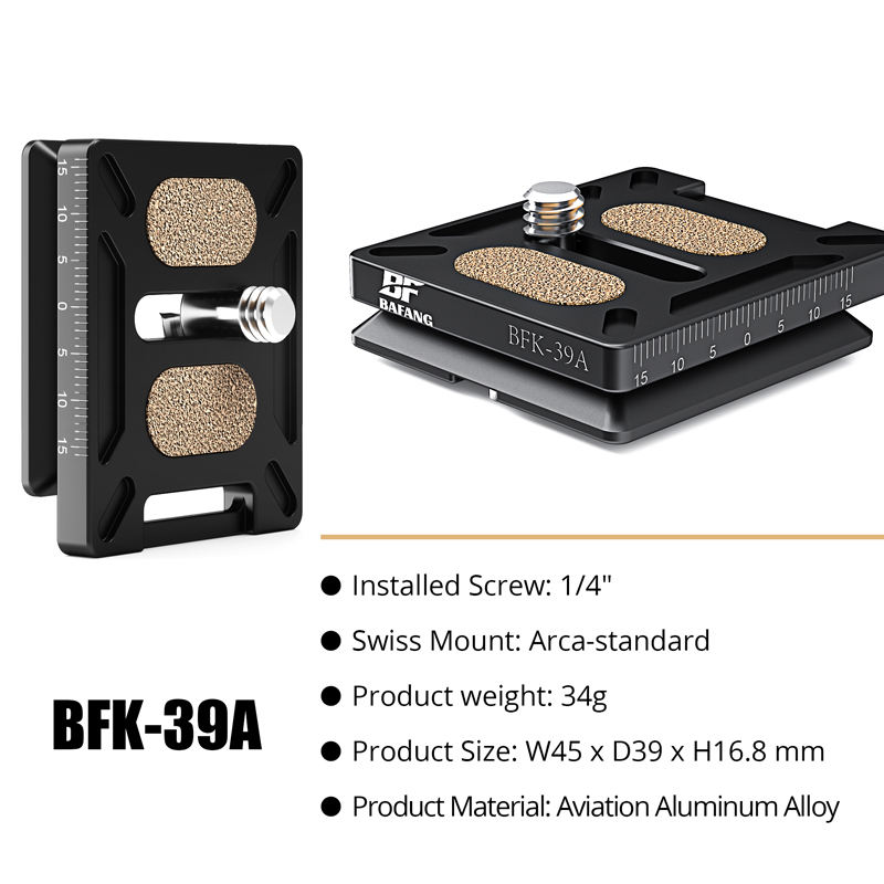 Vente directe d'usine BFK-39A plaque de dégagement rapide en alliage d'aluminium d'origine longueur inférieure 39MM accessoires de caméra Acra/RRS