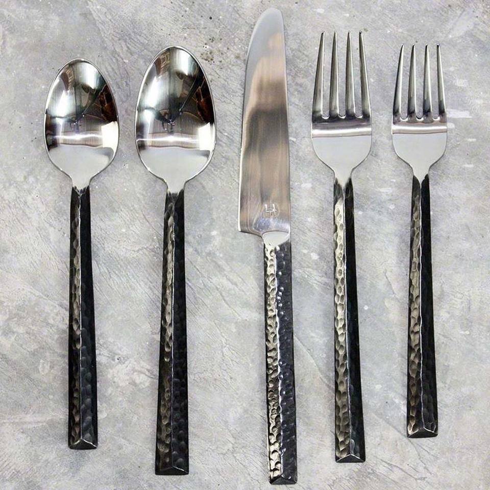Vente directe d'usine vaisselle en acier inoxydable plaqué argent solide poignée audacieuse argenterie cuillère et fourchette ensemble