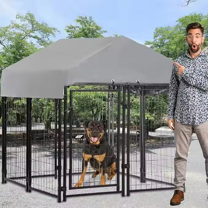 Vente directe d'usine, grand chenil en métal noir, couverture supérieure, 6 pieds x 12 pieds x 7 pieds, Australie, galvanisé, modélisation 3D pour les grandes maisons pour animaux de compagnie