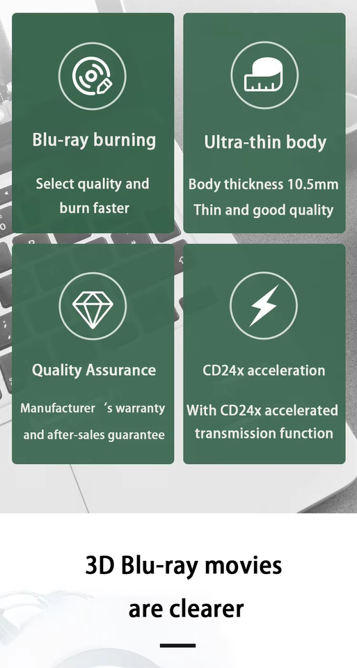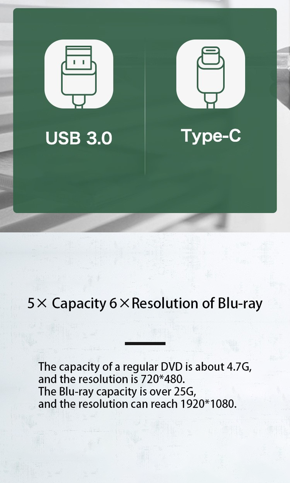 Vente directe d'usine Blu-ray 12.7mm Externe Portable DVD CD Lecteur Optique Type-C USB 3.0 DVD CD Graveur CD DVD Lecteur