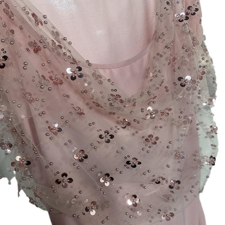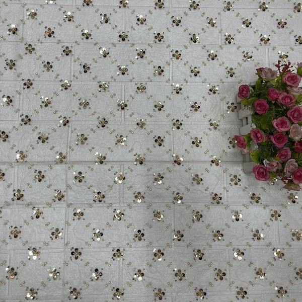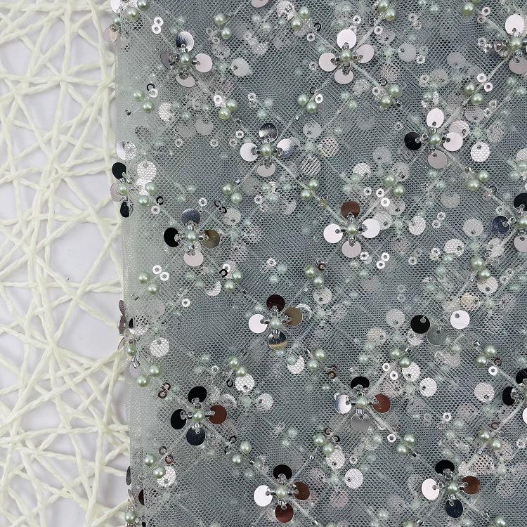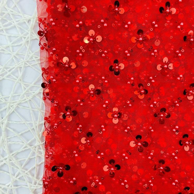 Vente directe d'usine Tissu brocart Jacquard Robe de scène pour filles Robe de mariée Dentelle Maille Trèfle à quatre feuilles Broderie de perles Paillettes 100%