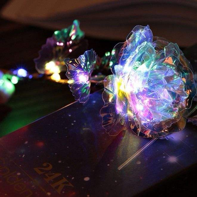 Bouquet de roses galaxie 24K avec télécommande pour enfant, Base cadeau pour petite amie, vente directe d'usine, offre spéciale