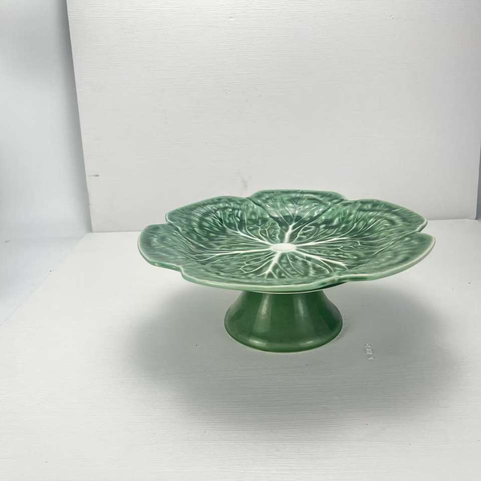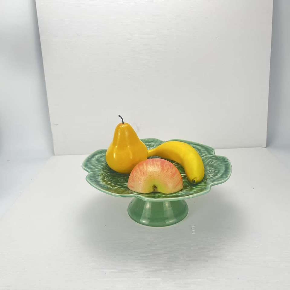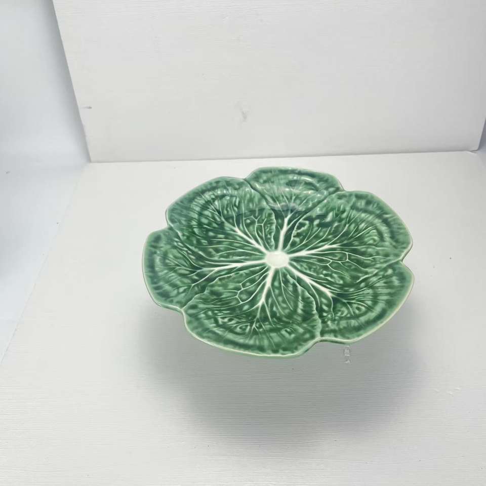 Assiettes en céramique élégantes en forme de feuille verte de vente directe d'usine pour servir des collations de fruits de salades-Dishwar créatif