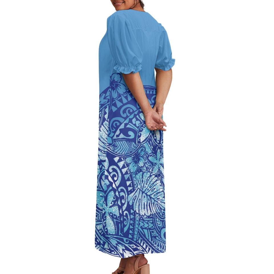 Vente directe d'usine robe hawaïenne de haute qualité Mumu femmes grandes personnes personnalisé sur demande à manches courtes en mousseline de soie robe insulaire