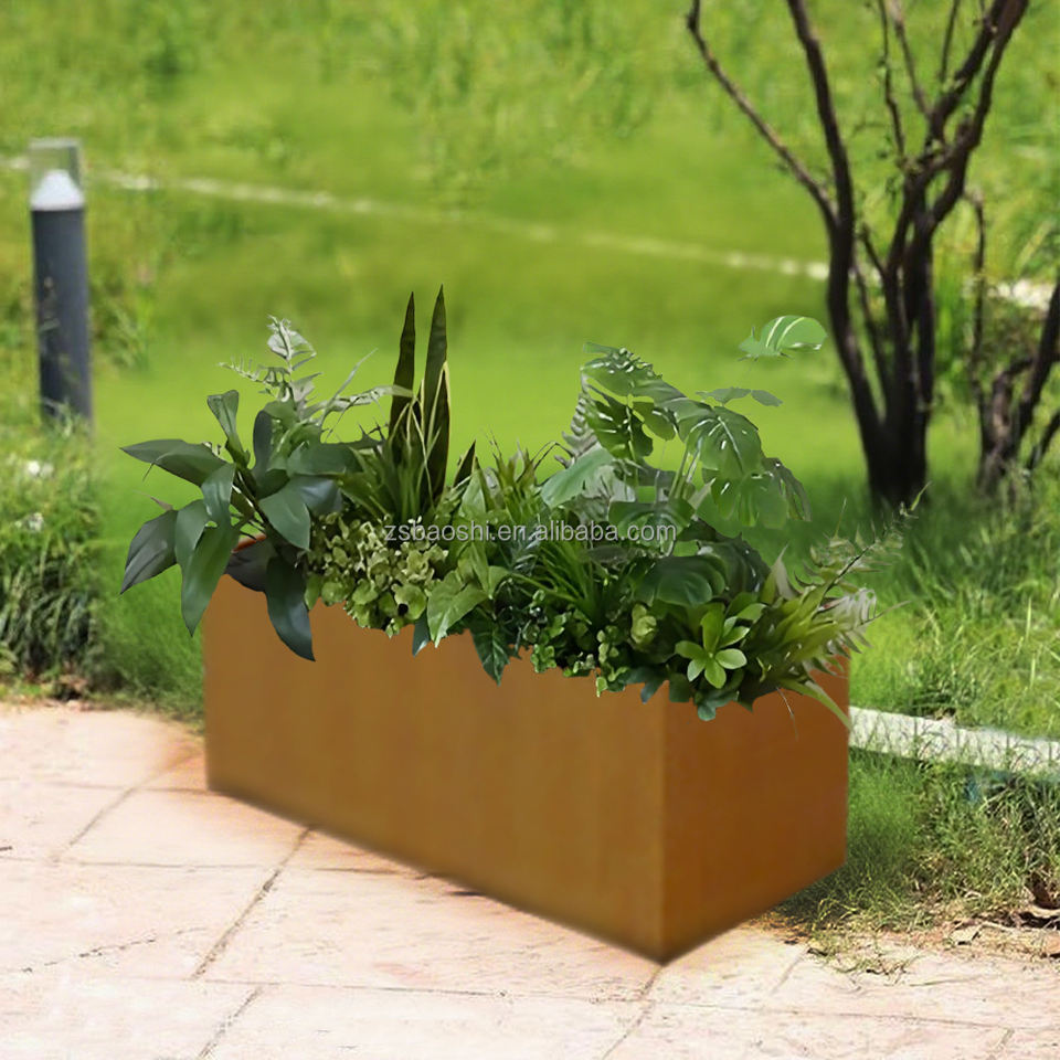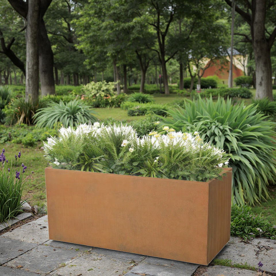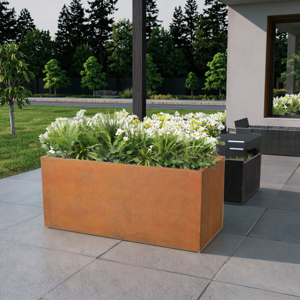 Vente directe d'usine KD Structure Pot de fleur en acier Corten grand arbre extérieur rectangulaire jardinière en métal Pots de jardin