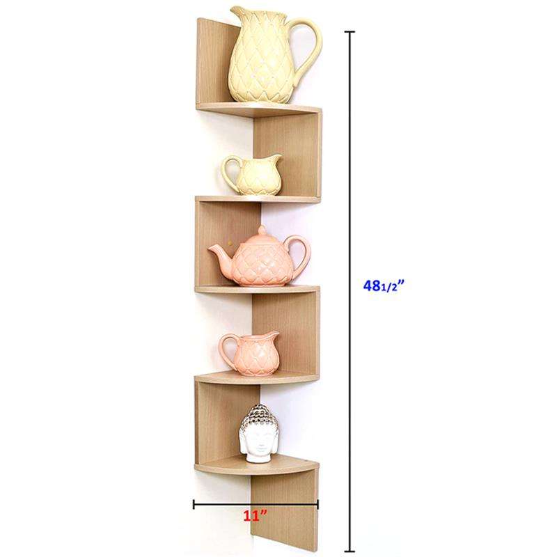 Vente directe d'usine toilettes pour salon à 5 niveaux échelle d'angle murale étagère couleur marron