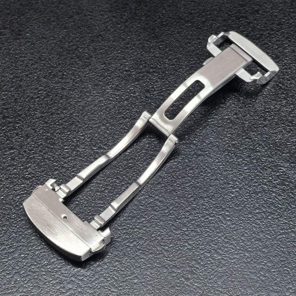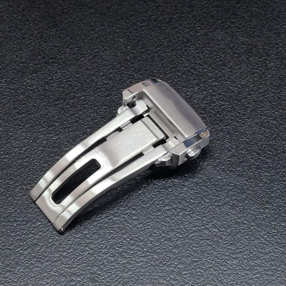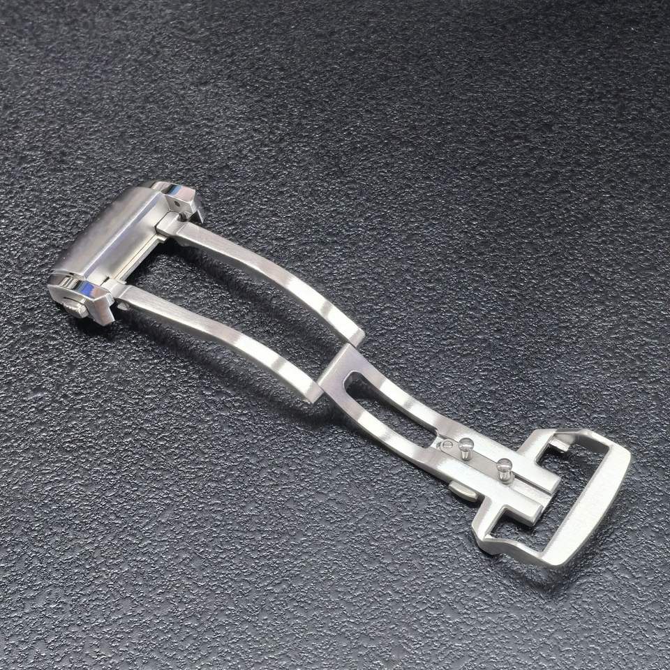 Vente directe d'usine de luxe 18mm argent poli en acier inoxydable brossé fermoir pliant pour bracelet en cuir en caoutchouc boucle de bracelet de montre